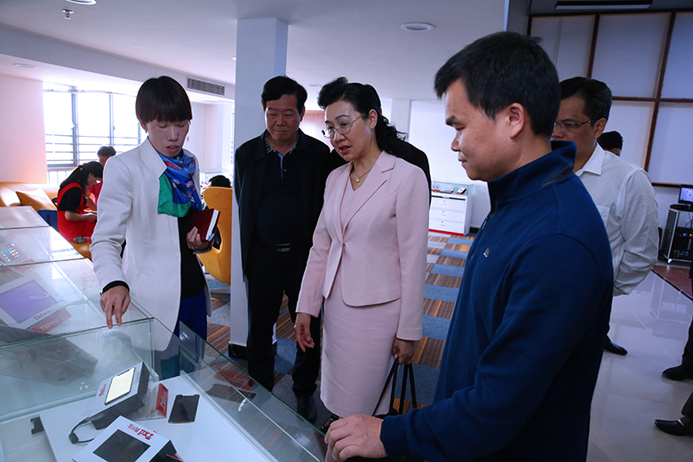 會(huì)議開始前,在公司高層人員的帶領(lǐng)下,市領(lǐng)導(dǎo)參觀公司產(chǎn)品展示廳。期間,顯示觸控事業(yè)群總裁隆曉燕與研發(fā)中心總經(jīng)理駱志鋒向市領(lǐng)導(dǎo)重點(diǎn)介紹了公司的產(chǎn)品。